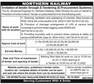 Tender for Providing boundary wall to prevent stress passing & safety on section ADEN/ROK under Sr. DEN IV/DLI (NIT 55-W-IV-22-23)