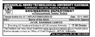 Tender for Providing CC Roads and Drains in JNTUK campus Kakinada