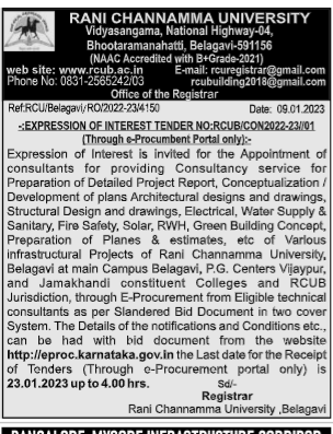 Tender for providing Consultancy service for Preparation of Detailed Project Report, Conceptualization/ Development of plans Architectural designs and drawings, Structural Design and drawings, Electrical, Water Supply & Sanitary, Fire Safety, Solar, RWH