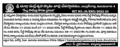 Tender for providing consultancy services for various constructions in Sri Ammavari Devasthanam. Eligible Registered Consultancy Firms/Individuals with 5 years