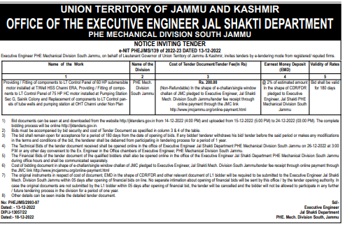 motor installed at T/Well HSS Channi ERA, Providing/Fiting of compo