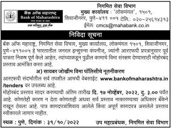 Tender for for providing further work insurance cover from General Insurance Companies in India who have fulfilled the pre-qualification criteria as per RFP form.
