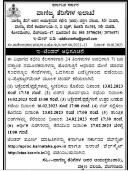 Tenders have been invited through e-procurement for the recruitment of 71 Data Entry Officers from agencies providing HR services on outsourcing basis for the office works of this department for a period of 24 months.