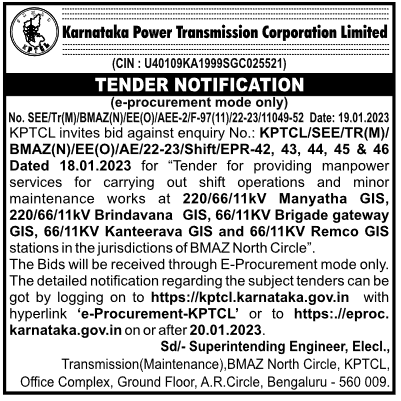 “Tender for providing manpower services for carrying out shift operations and minor maintenance works