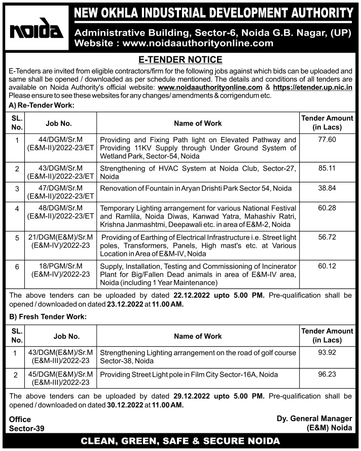 Providing of Earthing of Electrical Infrastructure i.e. Street light poles, Transformers, Panels, High mast’s etc. at Various Location in Area of E&M-IV, Noida