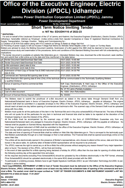 Providing of power supply to left out houses if village Kali Mohra Sc Mohalla Tehsil Majalta under UT Capex on Turnkey Basis.