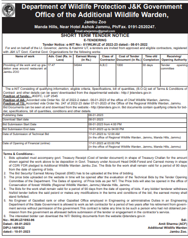 Tender for Providing of tile work and up gradation area around restaurant at Jambu ZOO