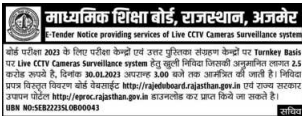 Tender for providing services of Live CCTV Cameras Surveillance system Turnkey Basis on Examination Centers and Answer Book Collection Centers for Board Exam 2023.