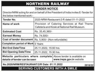 Tender for Provision of Catering Services at Rail Theme Cafeteria and Kiosk at National Rail Museum.
