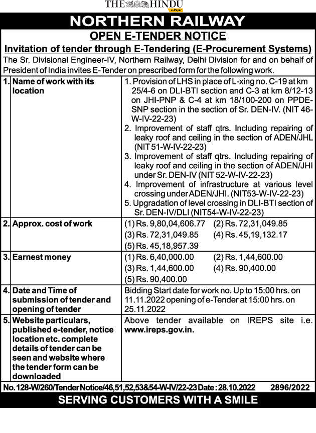 Tender for Provision of LHS in place of L-xing no. C-19 at km 25/4-6 on DLI-BTI section