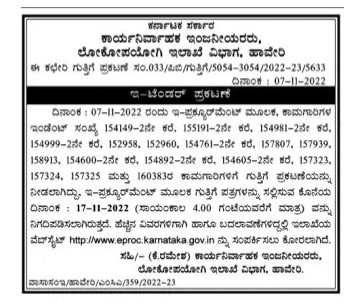Tender for Public Works Department Division, Haveri seo roart