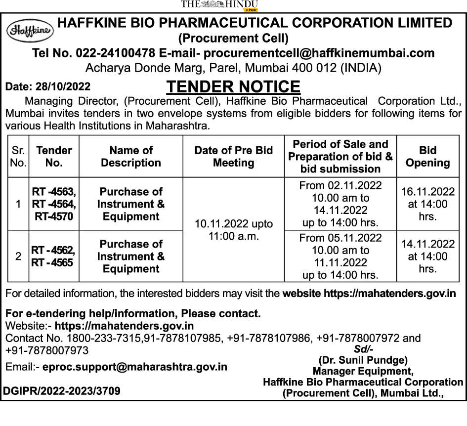 Tender for Purchase of Instrument & Equipment RT-4562, RT-4565