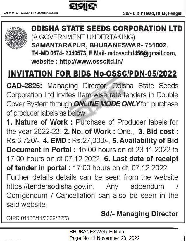 INVITATION FOR BIDS No-OSSC/PDN-05/2022