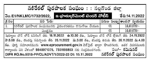 Tender for Purchase of Vaikuntharadam for Nakirekal Municipal Corporation