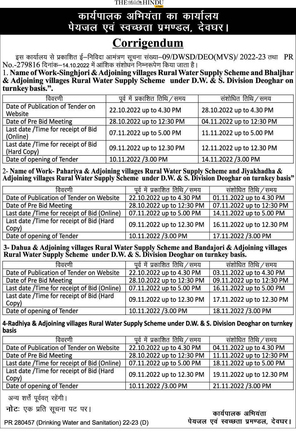 4-Radhiya & Adjoining villages Rural Water Supply Scheme under D.W. & S. Division Deoghar on turnkeybasis