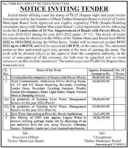 Tender for Rain Water Harvesting at Devo Kr. Borah Auditorium.