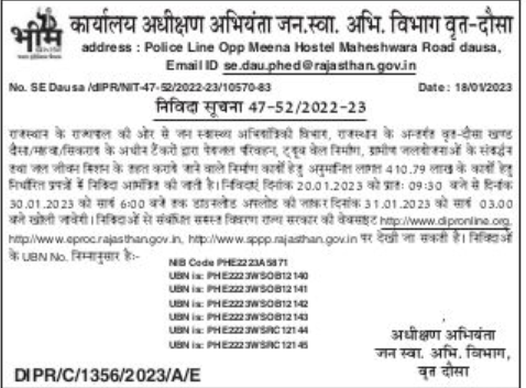 Rajasthan, under Public Health Engineering Department, Rajasthan,