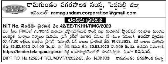 at Ganganagar and Ex Servicemen Colony in RMC Remaining Works (2 Months Works) Estimated Cost: