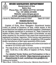 Tender for Rate Contract for repairs of Stern Gear/Propeller system of ferryboats.