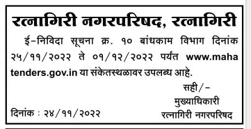 Tender for Ratnagiri Municipal Council, Ratnagiri.