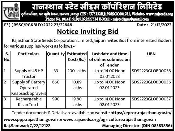 Tender for Rechargeable Kisan Torch