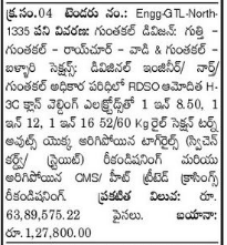 Tender for Guntakal Division: Gutti Guntakal Raichur – Wadi & Guntakal Bellary Sections: 1 in 8.50, 1 in 12, 1 in 1652/60 Kg in RDSO Approved H- 3C Class Welding Electrodes under Divisional Engineer/ North/ Guntakal Jurisdiction Reconditioning of Worn Tag Rails (Switchen Curve/ (Straight)) of Turnouts and |Reconditioning of Worn CMS/ Heat Treated Crossings.