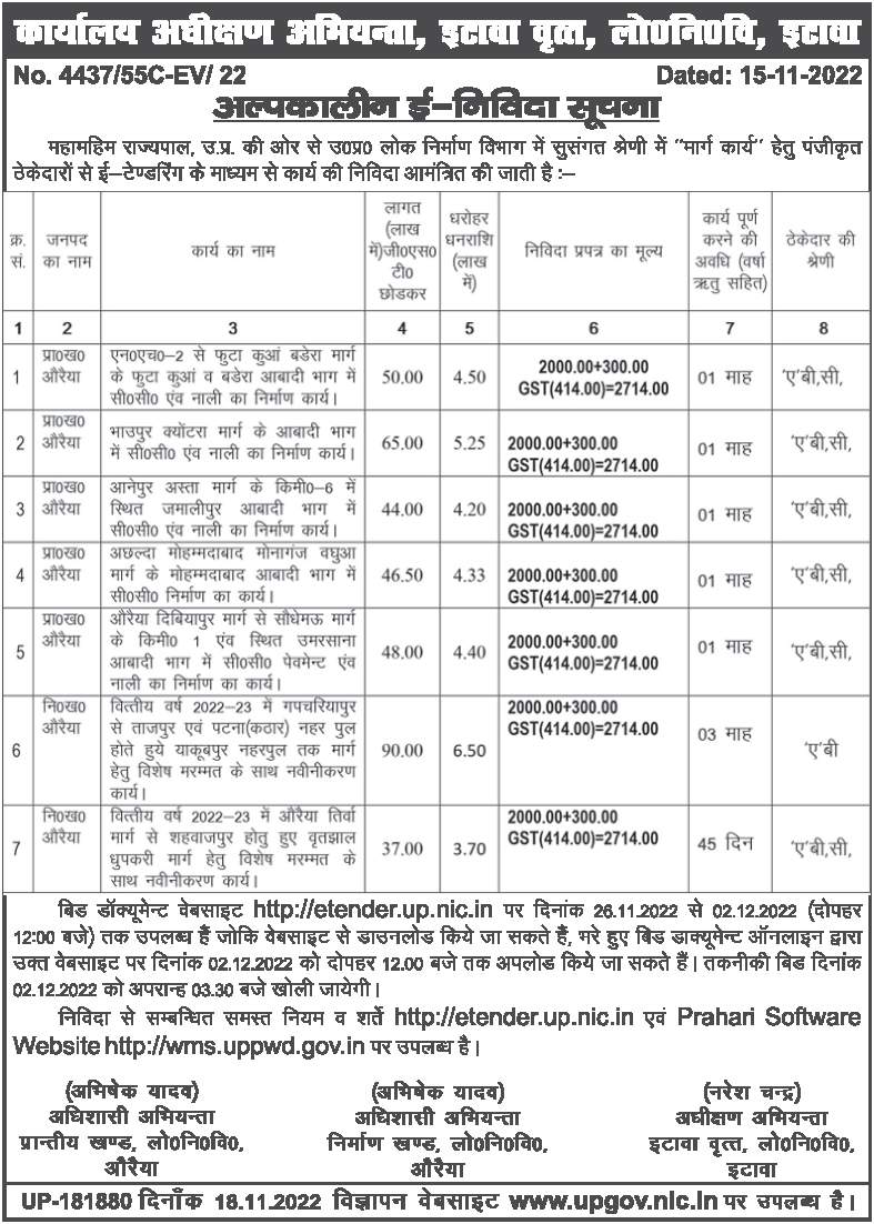 Tender for Reconstruction of VRB at Km 3.031 of Sijour Minor.
