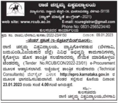 Rani Channamma University, Sour (Tender