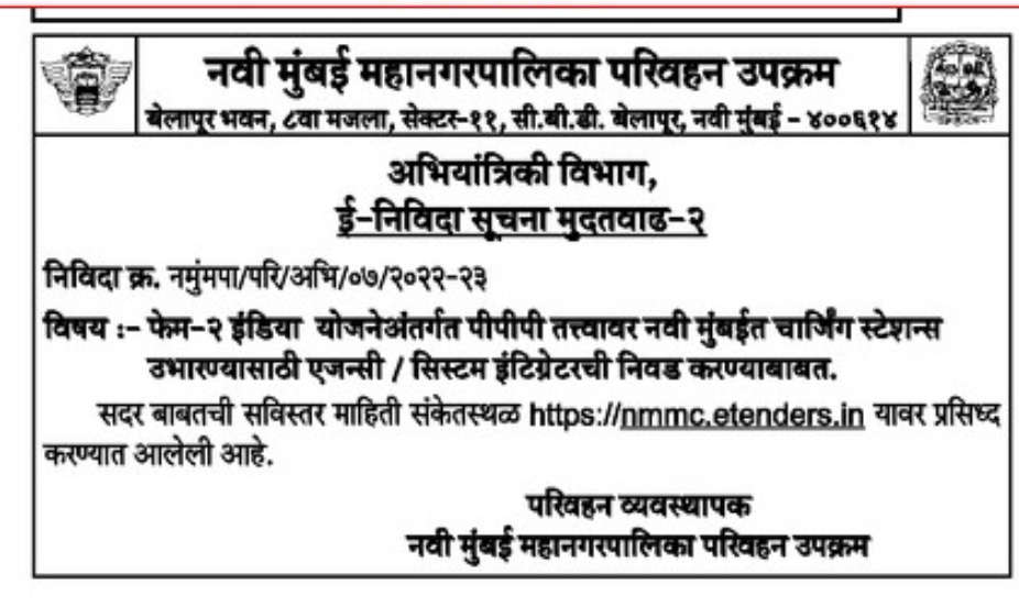 stations in Navi Mumbai on PPP basis under FAME-II India scheme.