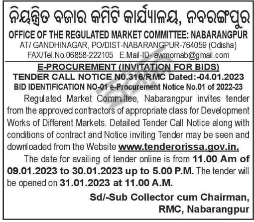 Regulated Market Committee, Nabarangpur invites tender