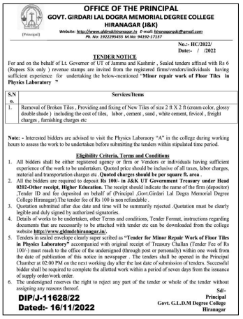 Tender for Removal of Broken Tiles, Providing and fixing of New Tiles
