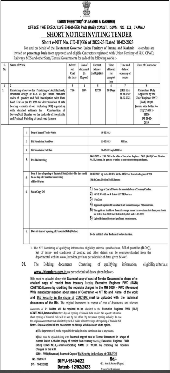 Tender for Rendering of service for Providing of Architectural/ structural design of RCC as per Indian Standard codes of practice and Sell investigation with late Load Test as per 15: 1888 for determination of safe bearing capacity of soil including BOQ supporting with detailed estimate for Contraction of Service/Staff Quarter on the backside of Hospitality and Protocol Building a canada