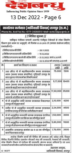 Tender for Renovation and minor work of toilet in Scheduled Tribe Boys Hostel Danganiya Raipur in Po