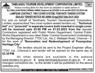Tender for “Renovation and Redevelopment of Poompuhar Heritage City”.