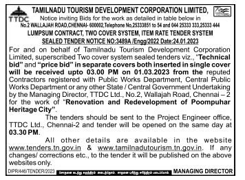 Tender for Renovation and Redevelopment of Poompuhar Heritage City.