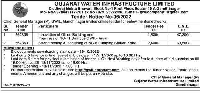 Tender for renovation of Office Building and Premises of NC-11 Campus GWIL- Anjar.