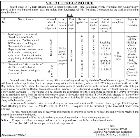 Renovation of office chamber of the Director of Technical Education, Assam, Kahilipara, Guwahati-19