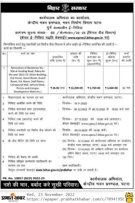 only on website www.eproc2.bihar.gov.in