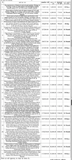 Tender for Renovation of toilet cum bathroom & improvement of W/S and sanitary fittings & sewerage work at staff quarter, Speaker Residence campus Kanke Road Ranchi under D.W. & S.Division, Gonda, Ranchi.