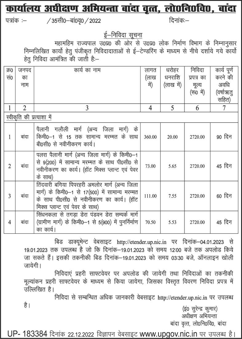Tender for Renovation work from B.C. with general repair from Km-1 to 15 of Pailani Galauli Marg (Other District Road).