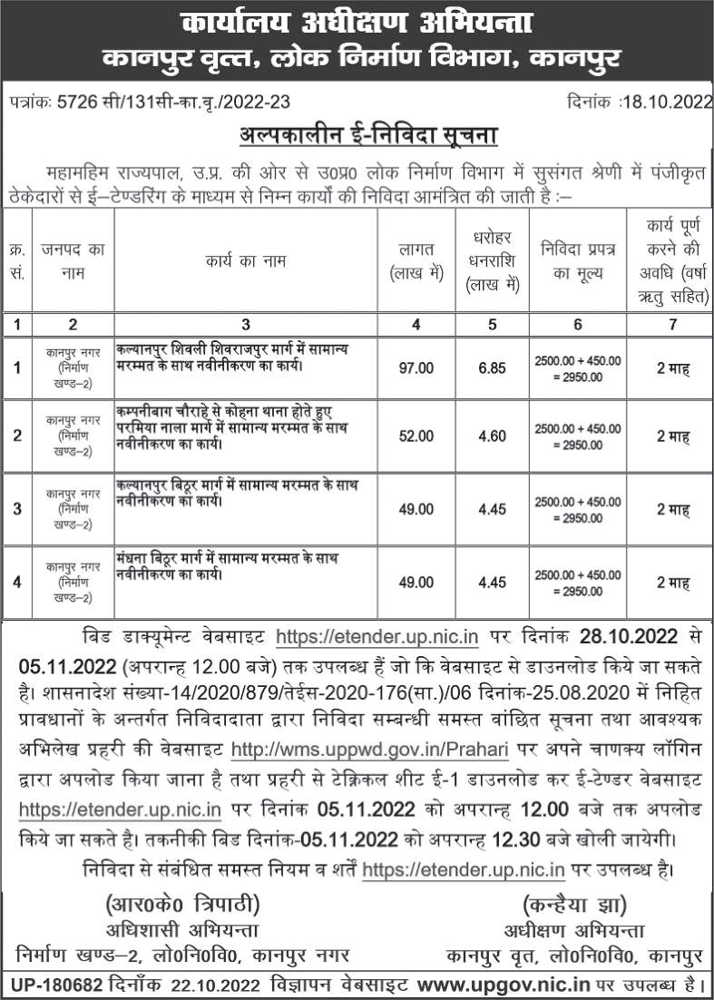 Tender for Renovation work with general repairs in Dhana Bithur Marg.