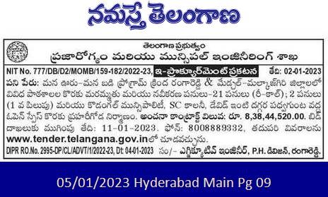 Under Mana Uru-Mana Badi Program in Rangareddy & Medchal Malkajigiri Districts Repair and renovation works for various schools-21 works (re-call); 2 works (1st call) and construction of retaining wall for open space at Padhwagunta near David house, Kodangal Municipality, SC Colony