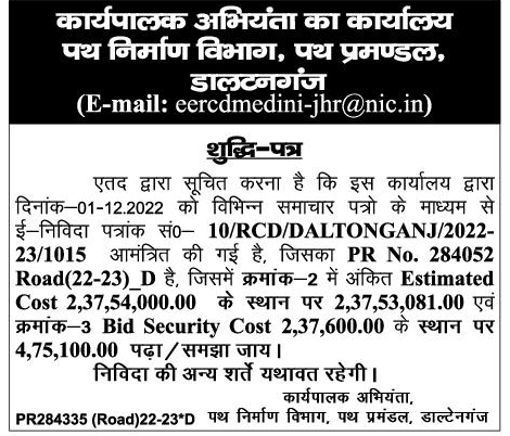 Tender for Repair of Road 150M and 800m of Three Mixed Roads in West Colony and North Colony. (c) Drain repair of South Colony and West Colony of Purnia Junction under Yogabani Section of Katihar.