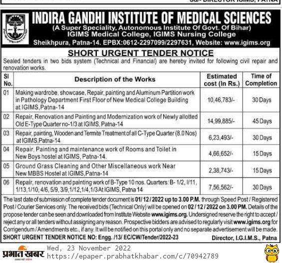 propose tender can be seen and downloaded from Institute Website www.igims.org. Undersigned reserve the right to accept/