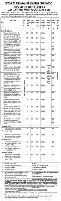 Tender for Repair Renovation of Panchayat Ghar Topa Panchayat Topa Thera Block Mankote Under 14FC for the year 2022-23. 1 Call