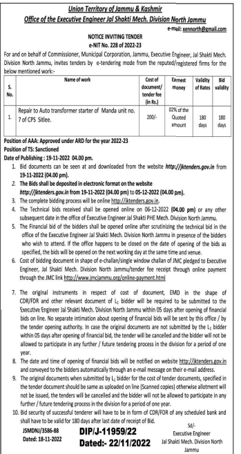Tender for Repair to Auto transformer starter of Manda unit no.