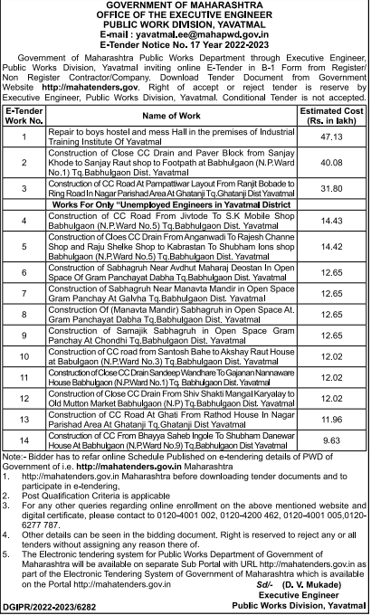 Tender for Repair to boys hostel and mess Hall in the premises of Industrial Training Institute Of Yavatmal