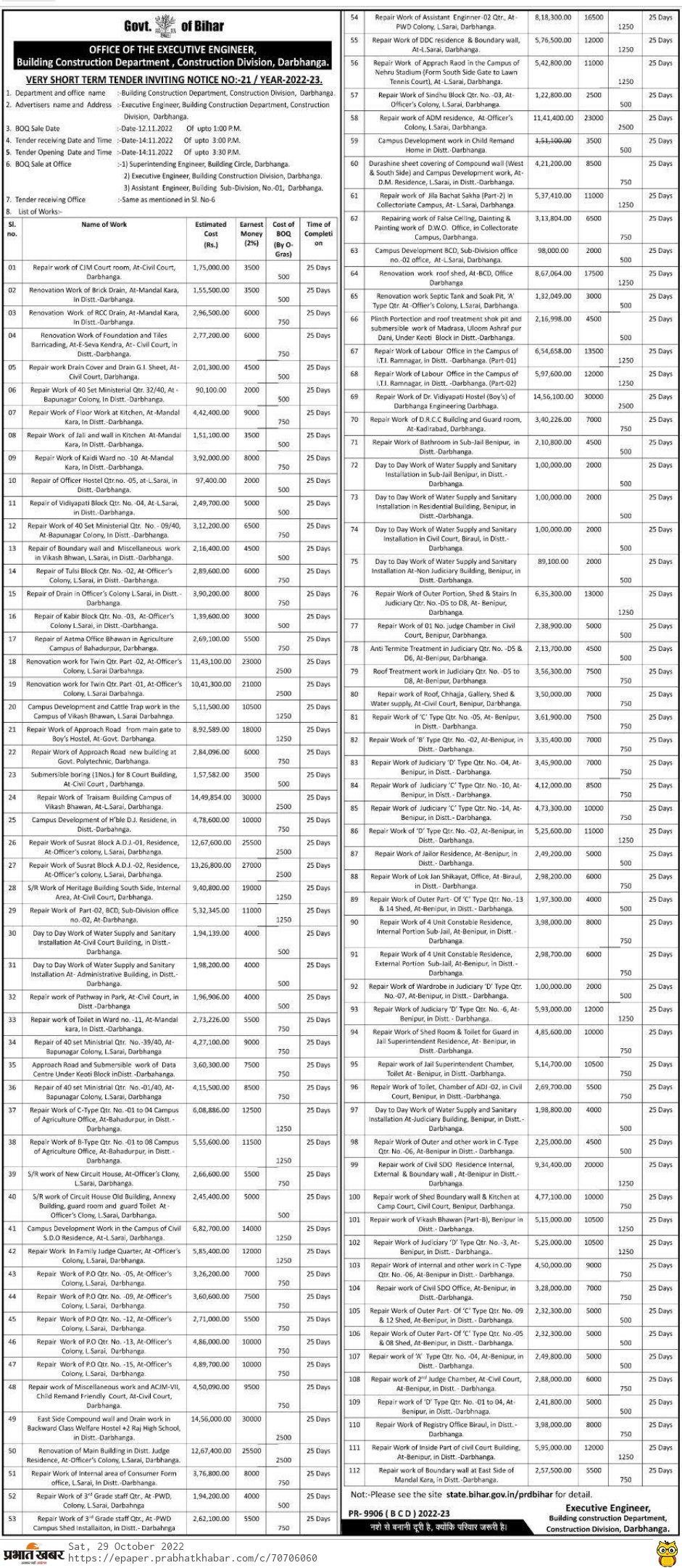 Tender for Repair work of Roof, Chhajja, Gallery, Shed &