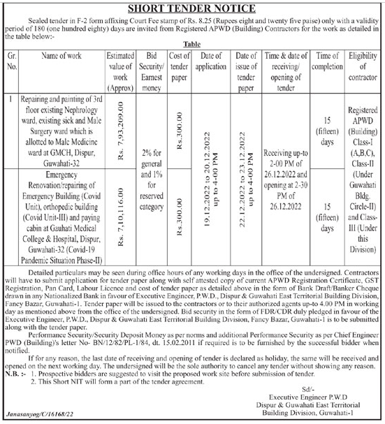 existing sick and Male Surgery ward which is allotted to Male Medicine ward at GMCH, Dispur, Guwahati-32