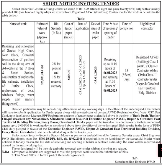 Repairing and renovation of Gauhati High Court, New Block, Guwahati (construction of partition wall in the sitting area of
